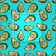 Avokadon mönstrar med krickablåttbakgrund