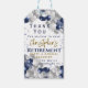 En vacker marinblå och silverfärgad presentkort för avskedspartaj. Denna ballonginspirerade design är den perfekta tackgåvan för gästerna. Personliggör med eget namn och meddelande. Guld och blå typografi på vit bakgrund.