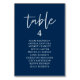 Blått Bord-kort för gästgäst i bröllop, Modern avslappnad Navy-skript. Anpassa texten och / eller ta bort och fylla i med temat för bröllopsfesten.