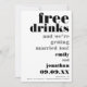 En typografisk förenklad roligt för inbjudan dina gäster till sparan av ditt bröllop-datum, vilket är helt anpassade. Texten justeras mot högerna, med fet svart typografi överst, fria drycker följt av Och vi Gifta sig också i grått, namn, bröllop datum och plats i en blandning av svart och grått. En grått-bakgrund i coolan finns på baksidan som du kan byta till ett annat färg om du vill via alternativet Anpassa ytterligare.