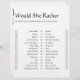 Denna minimalistiska avslappnad är perfekt för din avslappnad moderna möhippa. Dubbla roligten med två spel, "skulle hon hellre vilja" och "möhippa bingo"! Den här designen har en svart enkel kalligrafi med vit neutralt som matchar din klassiska bröllop eller minimalistiska boho bröllop i vår, sommar, fall eller vinter. Jag ber er att ni kan ställa frågor till oss om utformningen.