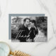 Ett enkelt tack från bröllop som visar vågräts foto med "Tack" i ett vitt handskript. Anpassa framsidan av det moderna tackkortet genom att lägga till ditt namn. Baksidan av fototacket som du kortar visningar din anpassningsbar tack för att du skrev ett vitt brev med dammig blå bakgrund. Designad att samordna med vår Avslappnad Script Bröllop Collection.
