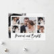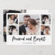 Det här enkla, svarta och vita bröllop-tillkännagivandet eller det nya julhälsningskortet har modern, avslappnad skripttypografi som säger "gift och ljus, med ett multifoto på fem bilder på framsidan och ett på baksidan.