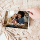 Det här enkla födelsedagskortet och snyggten för en vuxen, tonåring eller ett barn har ditt personliga foto med en vit övertäckning av trendigets avslappnad typografi som säger "Grattis på födelsedagen".