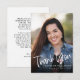 Ett handskrivet skript med avslappnaden, studenten tack vare ditt kort. Fotot är endast avsett för placering och kan ersättas med valfritt foto. Anpassa meddelandet på kortets baksida eller så kan du ta bort och skriva ett handskrivet tack till dina gäster i studenten.