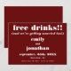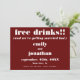 En roligt och fet typografisk design för inbjudan dina gäster till sparan av ditt bröllop-datum, vilket är fullt anpassade. Den centrerade texten är vit, med huvudet, gratis dryck följt av tagline, och vi är också Gifta sig, namn, datum och plats för bröllop. På båda sidor finns en grumlig bakgrund som du kan byta till ett annat färg om du vill med alternativet Anpassa ytterligare.