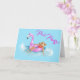Avslappnande i poolen på en het rosa flamingoflott kort
