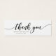 Detta stilrena mini-kort med orden "tack" i svart skrivstil är en bra etikett för bröllopspresenter. Lämna baksidan svart eller ändra den till vit (klicka på anpassa).