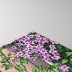 En söt illustration gjord i en tecknad bok tecknad stil av ett dam som dricker kaffe på sin lampa utanför med sina två vita katter. Hon är omgiven av vackra hängande lila Clematis och andra söt anläggningar.