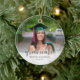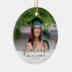 Detta är en perfekt present till årets examen. Designen har en fotoram som fyller prydnadsföremålet och modern grå kalligrafi för ordet "examen". Anpassad text låter dig anpassa med examenens namn och år.