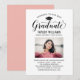 Fira din examen med denna eleganta examensfest-inbjudan med en blomstrande "Avslutad"-kalligrafiskrift som accentueras av en examensmössa-ikon, ett seniorporträtt och alla festsdetaljer på en ren vit layout. Den enkla, typsnittsdrivna designen låter den vackra bokstavsformen och ditt foto ta huvudrollen med ett matchande roségult kort bakgrund. Fullständigt anpassningsbar text genomgående.