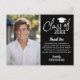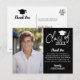 Ett "Tack"-kort för avslutning med ett foto och anteckning på framsidan. Det finns utrymme på baksidan att skriva ett personligt tack. Du kan skriva in anpassad text på framsidan för ett allmänt tack. Lägg till ett foto på studenten eller ett foto från avslutningsceremonin på framsidan.