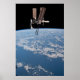 Denna bild av Internationell Space Station och den dockade rymdfärjan Endeavor, som flyger på ungefär 220 sjömil, togs av besättningsmedlemmen Paolo Nespoli från Soyuz TMA-20 efter dess avdockning den 23 maj 2011 (USA-tiden). Bilder som tagits av Nespoli är det första fartyget som tas av en skyttel som är dockad till Internationell Space Station från ett ryskt rymdfarkoster Soyuz. I Soyuz fanns den ryska kosmonauten och Expedition 27 befälhavare Dmitry Kondratyev, Nespoli, en europeisk rymdbyråastronaut och NASA astronaut Cady Coleman. Coleman och Nespoli var båda på flykt ingenjör. De tre landade i Kazakstan senare samma dag, vilket fyller 159 dagar i rymden.