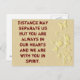 Avstånd kan separera oss men du är alltid i våra hjärtan och vi är med dig i anden.