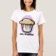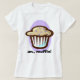 Särdragbild av muffinen med ord "aw, muffin!", på bekläda. På baksidaen i lilla brev det något att säga "Okiday Inc. ",