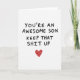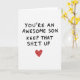 This heartfelt card delivers a message of pride and encouragement with a bold, personal touch. Centered on a bright white background, the handwritten-style text reads, “YOU’RE AN AMAZING SON KEEP IT UP,” making the message feel sincere and direct. The slightly uneven lettering adds warmth, like a note written straight from the heart. Beneath the words sits a bright red heart, drawn with lively red and white strokes that add energy and emotion. The contrast between the black lettering and the red heart makes both elements stand out clearly. This card celebrates love, support, and appreciation, making it a meaningful way to remind a son how valued and admired he is. ❤️💌