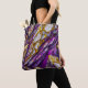 En abstrakt design i lila, guld och vitt, som liknar en stenig terräng, täcker denna axelväska.