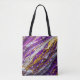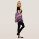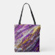 En abstrakt design i lila guld och vitt som liknar robust terräng täcker denna axelväska.