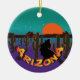 Jul i Arizona Desert - en sydvästlig roligt med en färgad öken, orange måne, saguaros och howling coyote. AZ statlig flagga på baksidan