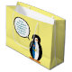 Den stora presentsäcken har Penguin. På Azorerna har hon en väst av den vita, blå, guld och röda Flagga Azorerna. Hon bär det stolt här. Med pratbubblan kan du lägga ord i munnen för att anpassa presentsäcken. Du kan också ändra färg i bakgrunden så att temat party matchar eller komplimenteras.