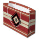 Aztec-mönster med geometriska former i rött, orange, grått och svart färg på strimlad bakgrund