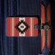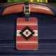 Aztec-mönster med geometriska former i rött, orange, grått och svart färg på strimlad bakgrund
