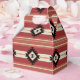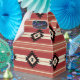 Aztec-mönster med geometriska former i rött, orange, grått och svart färg på strimlad bakgrund