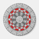 Ett enkelt geometriskt mönster på utsidan, som delvis inspirerats av gamla aztec-konstruktioner, omger ett främmande temat lagrar, ett övertonat lagrar och ett enkelt ekvippande lagrar i denna koncentriska cirkelformning.