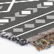 Aztec påverkade formerna och linjen mönster i grått och vita detaljer på en svart bakgrund.