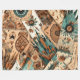 Den inhemska amerikanska stamdesignen av aztec har ett lappverk av blåa och bruna fjädrar i sydväst, vattenfärgad blommigt inslag och geometriska former.