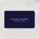 La tarjeta está diseñada usando papel blanco, en fondo azul marino. Diseño fresco, claro, simple y elegante.
