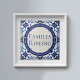 Azulejo Mediterranean Blue Custom House Name Plate Plaque Sign. You can edit the text in the center, change the font, change the color, size, etc. Gift these tiles as custom name coasters for each family member, for friends or teams, use them for home accents on your bookshelves, in your living rooms and bedrooms, or as mosaic wall art with other tiles. Or leave the central space empty, and use as decorative backsplash ceramic tiles.