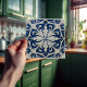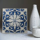 Azulejo Blue och White Symmetrical Blommigt Kakelplatta