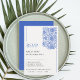 RSVP-kort från Azulejo, blå porslins bröllopssamling. Denna design har motiv från vintage portugisiska plattor som kallas Azulejo och chinoiserie-element som kan ses på porslin. Kolla resten av kollektionen för matchande azulejo bröllopsinbjudningar, RSVP, menyer, skyltar och mer!