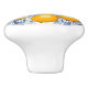 Den hÀr keramiska knoppen visar pÄ en graciös citron gren-design, dÀr tre guldcitroner och mindre fruktnestlar mellan lush grönt och blÄfÀrgad löv. Den Àr inspirerad av azulejos - Portugals och Spaniens berömda, handmÄlade glasrutor - och formgivningen Àr utformad genom att man roterar koboltblÄ blommor som tillför djup och rörelse. Den grÄ bakgrunden förstÀrker de levande citrusfÀrgerna och skapar ett utseende som Àr bÄde fÀrskt och förfinat, en perfekt för att framkalla varma somrar i MedelhavsomrÄdet. Denna 1,5-tumsknapp Àr gjord av mjuk, glansig keramik och Àr hÄllbar, lÀtt att installera med den medföljande skruven och perfekt för att göra skÄp, lÄdor eller möbler ljusare med en aning hantverksmÀssig charm.