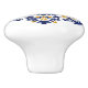 Den hÀr keramiska knoppen har en utvecklad medallion i blommigt i djup kobolt blÄ och varm gyllene gult, inspirerad av azulejos - Portugals och Spaniens traditionella, handmÄlade glasrutor, beundrade för deras oskÀrpa och pulserande elegans. Konstruktionen utstrÄlar frÄn en detaljerad central blommar, med lagrar av petalliknande blomning och ytverk som ge i biet Àr djupt och rörligt. Den skarpa vita bakgrunden förstÀrker den feta fÀrg-kontrasten och skapar den en slÄende dekorativ accent. Den hÀr 1,5-tumsknappen Àr skarp och lÀtt att installera med den medföljande skruven. Den Àr perfekt för att uppdatera skÄp, lÄdor eller möbler med ett litet medelhavskonst.