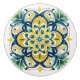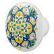 Denna keramiska knopp visningar en gult med strÄlande blommigt i guldfÀrgad , djup marin och fÀrsk grönt, med bra som Àr utförlig inspirerad av azulejos, Portugals och Spaniens traditionella, handmÄlade glasrutor. I det symmetriska mönster kombineras spetsiga petaler, rullande blomning och halvljusaccenter, som utstrÄlas frÄn en stjÀrnformad mittpunkt. Den skarpa vita bakgrunden förbÀttrar det levande fÀrg, ge biet bÄde ljusstyrka och elegans. Den hÀr 1,5-tumsknappen Àr utformad frÄn mjuk, glansig keramik och hÄllbar och lÀtt att installera med den medföljande skruven. Perfekt för skÄp, dragskÄp eller möbeluppgraderingar. Den tillför en omedelbar beröring av Medelhavsartister och tidlös charm till alla insida.