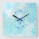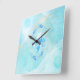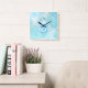 Azure Bloom Teal Lotus Flower Fyrkantig Klocka