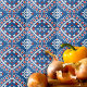 Azure Blue Red and White Ethnic Bohemian Mönster Kakelplatta