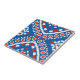 Fantastisk dekorativ platta med en sömlös mönster som består av geometriska former i blått, rött och vitt.
