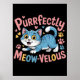 Den här charmerande grafiken har en innehållslös, blå och vit stripe-katt av tecknad i en lekfull, krokig hållning, med en klarare gult ögon och ett lycklig-uttryck med öppen mun. Ovanstående fet text, "Helt MEOW-VELOUS", återges i sansade rosor, som accentueras av att man flyter hjärtan och tass avtryck i olika färg, vilket kompletterar det glatta temat. Designen ställs in mot en solid svart bakgrund. Digital nedladdning endast för personlig använda.