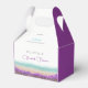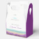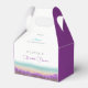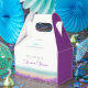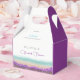 Möhippa Favor Box med rosa och azure magenta med kusten och berg som blomstrar. Sunny Nature blommigt liggande. Silhouettes of bergens, Sea kusten och bright rosa and lila blommor. Favoritruta för målning av vattenfärg i Möhippan Bakgrund. Azure Kusten i Bloom Collection.