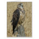 Järnrostvråk-kort. Sittande på en gammal kluven cederstolpe håller den rovlevande järnrostvråken utkik efter sin nästa måltid. Bönder älskar dessa fåglar för att de håller gnagarpopulationerna under kontroll naturligt.