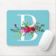 B Bokstav Initial Monogram Blommig Anpassad Färg Musmatta