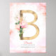 B Bokstavsmonogram Guldblad Rosa Magnolia Blomma Poster