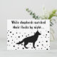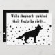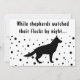 Det här roliga och unika Helgdag har ett enkelt svartvit färg-schema och ett modernt sött teckensnitt. På framsidan står det: "Medan shepherdsen tittade på sina flockar på natten", som är en vers av en populär jul sång, finns det på översta sidan och vid grund en enkel silhuett av den germanska shepherd hund i det fallande snö! Så söt! Kortets baksida har julhälsningar i samma karikatyrartade typsnitt och familjen namn och året i minimalistisk typografi. Under den sjunker snö igen! Hälsning kan lätt anpassas för personligt bruk. Denna unika, trendig, contemporary-utformning kommer säkert att få dig att framhäva den här julhelgen!