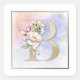 B Monogram Rosa Blommigt Fyrkantigt Klistermärke