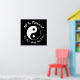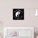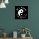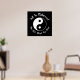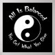 Allt är balanserat - du får det du Ge - svart poster med vit text och jingsymbol.