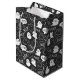 Den här bilden har ett levande och lekfullt Halloween-mönster med ett monokromatiskt svartvitt tema. Utformningen är fylld med ett sortiment av karikatyraktigt spöken, som var och en visar olika uttryck som sträcker sig från misskött till vänskapligt. Invånad bland spöken är tal bubblor med ord BOO! skrivet i fet brev, som lägger till en roligt och ett skämt i mönster. Den svarta bakgrunden gör att det vita spöken och den vita texten skapar en slående kontrast som förstärker den övergripande syndragningen. Mönster är perfekt för Halloween-dekorationer, party-förråd eller festkläder, som ger en roligt och lite högre atmosfär.