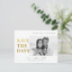 B&W Minimalistiskt fotfoto Guld Bröllop spara datu Vykort